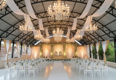 “An exquisitely designed hall offering a perfect blend of sophistication and space. Designed with flexibility, modern facilities, and a graceful atmosphere to elevate every event. Ideal for weddings, receptions, anniversaries, corporate events, and celebrations, the hall provides a luxurious ambiance with modern amenities to make every occasion truly memorable.”