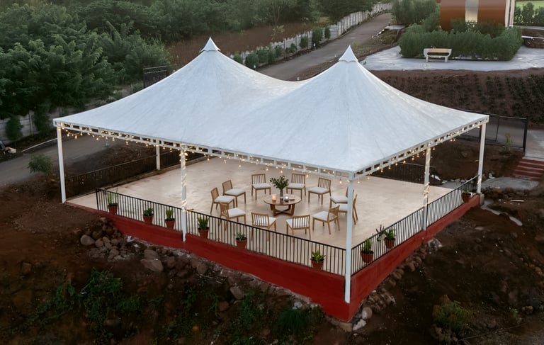 “An exquisitely designed open-air pavilion that blends natural beauty with refined elegance. The Royal Gazebo offers an intimate and picturesque setting for wedding rituals, private ceremonies, celebrations, and timeless photographs. Surrounded by serene landscapes, it creates a graceful ambiance where every moment feels exclusive and memorable.”