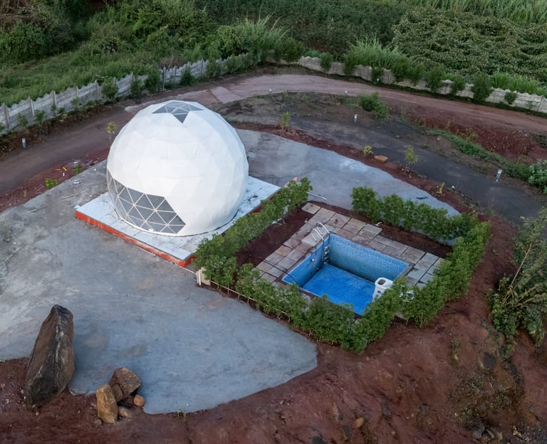 Step into a world of serene luxury at Snow Heaven, our signature dome cottage designed for an unforgettable stay. With its striking white geodesic architecture, Snow Heaven blends modern elegance with nature’s calm. Wake up to panoramic views, enjoy complete privacy, and unwind in your exclusive private pool surrounded by lush greenery.